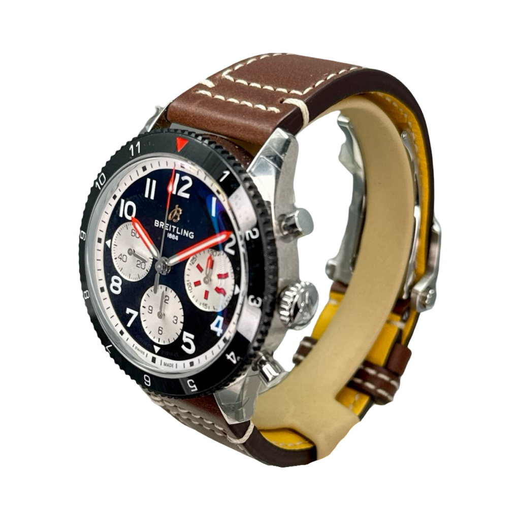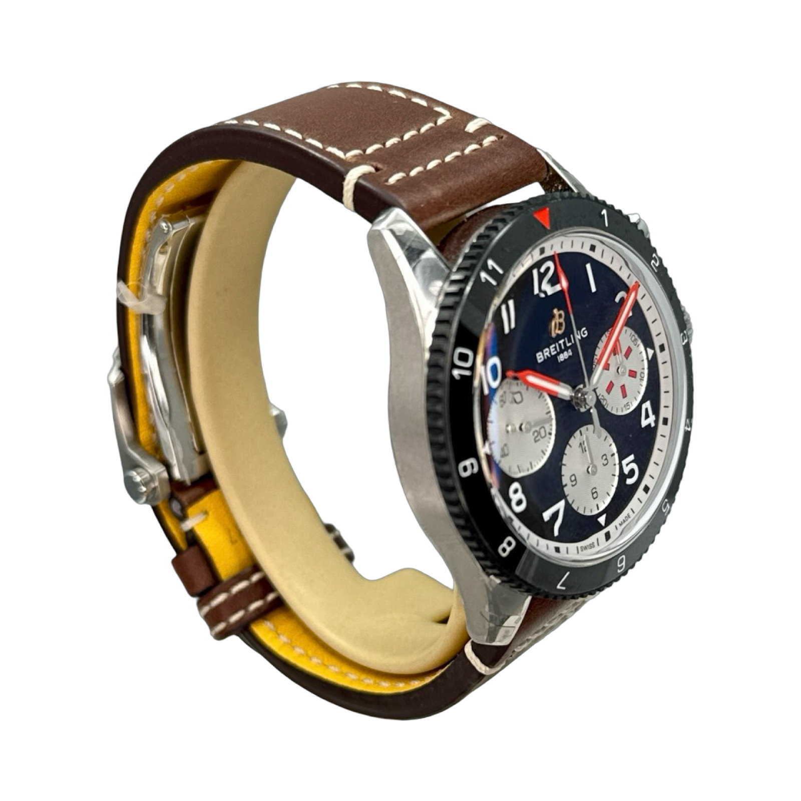 In the 1950s Breitling introduced yet another novel flight instrument, this time in wearable form: the Ref. 765 AVI. That pioneering pilot’s watch provided the technical backdrop for today’s Classic AVI, a collection inspired by the rugged spirit of famed early aircraft. The Classic AVI Mosquito honors one of those legends. In an era when aluminum and steel shortages were common, the engineers behind the de Havilland Mosquito made use of a still plentiful material: wood. The “Wooden Wonder” caused shockwaves when it outperformed its metal contemporaries to become one of the fastest planes built between 1940 and 1950.