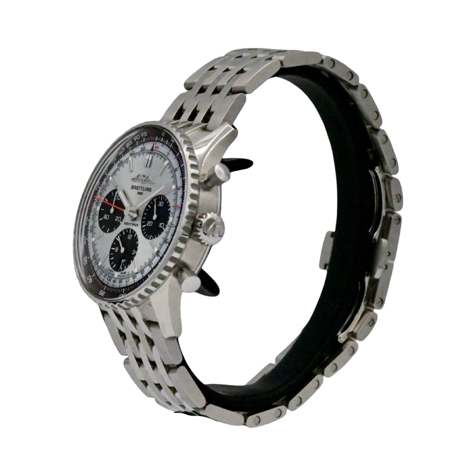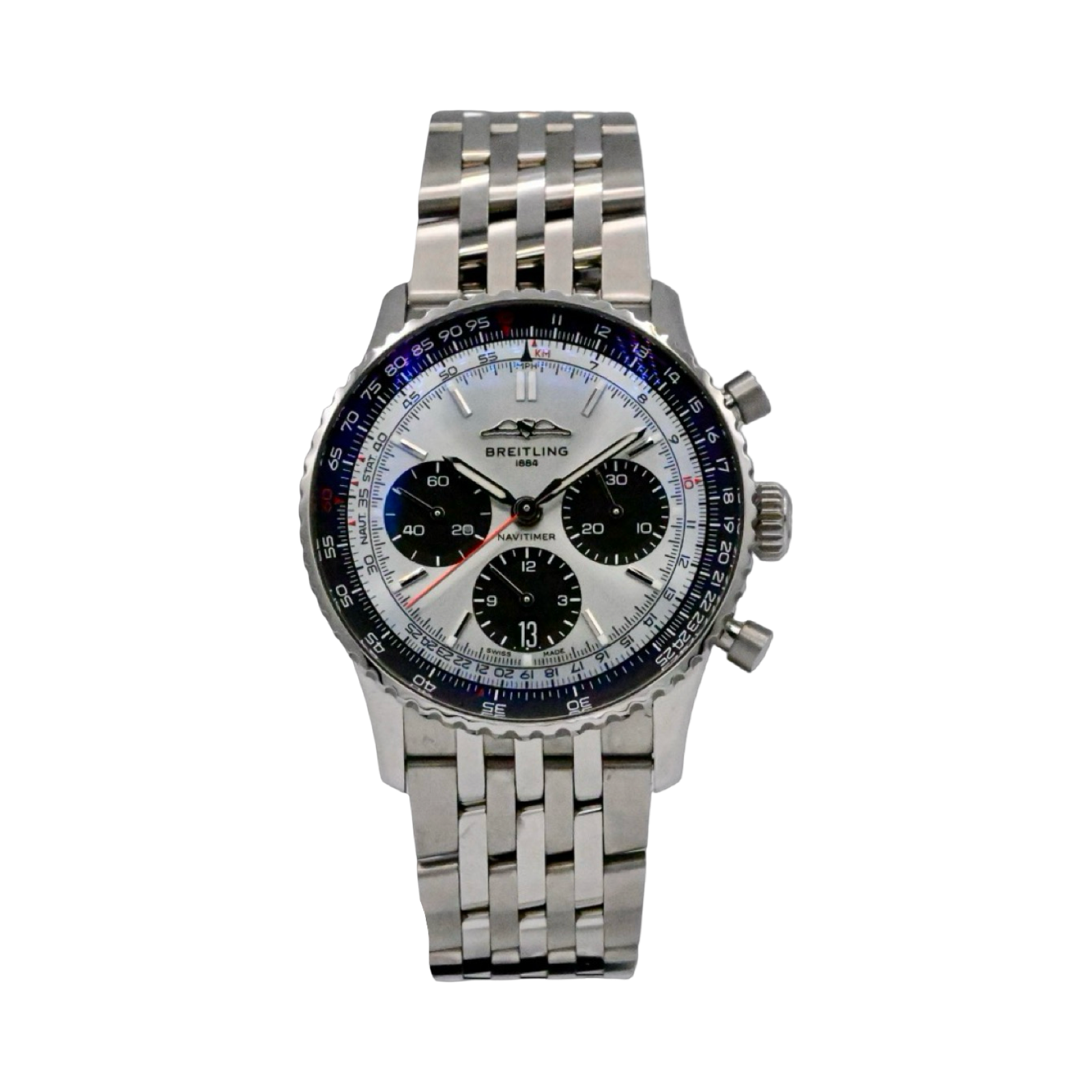 Since 1952 Breitling has produced a version of the Navitimer. Redesigned in 2023 this one is outfitted with their B01 Calibre in-house movement. This black dial version is reminiscent of those original pieces from the 1950's.