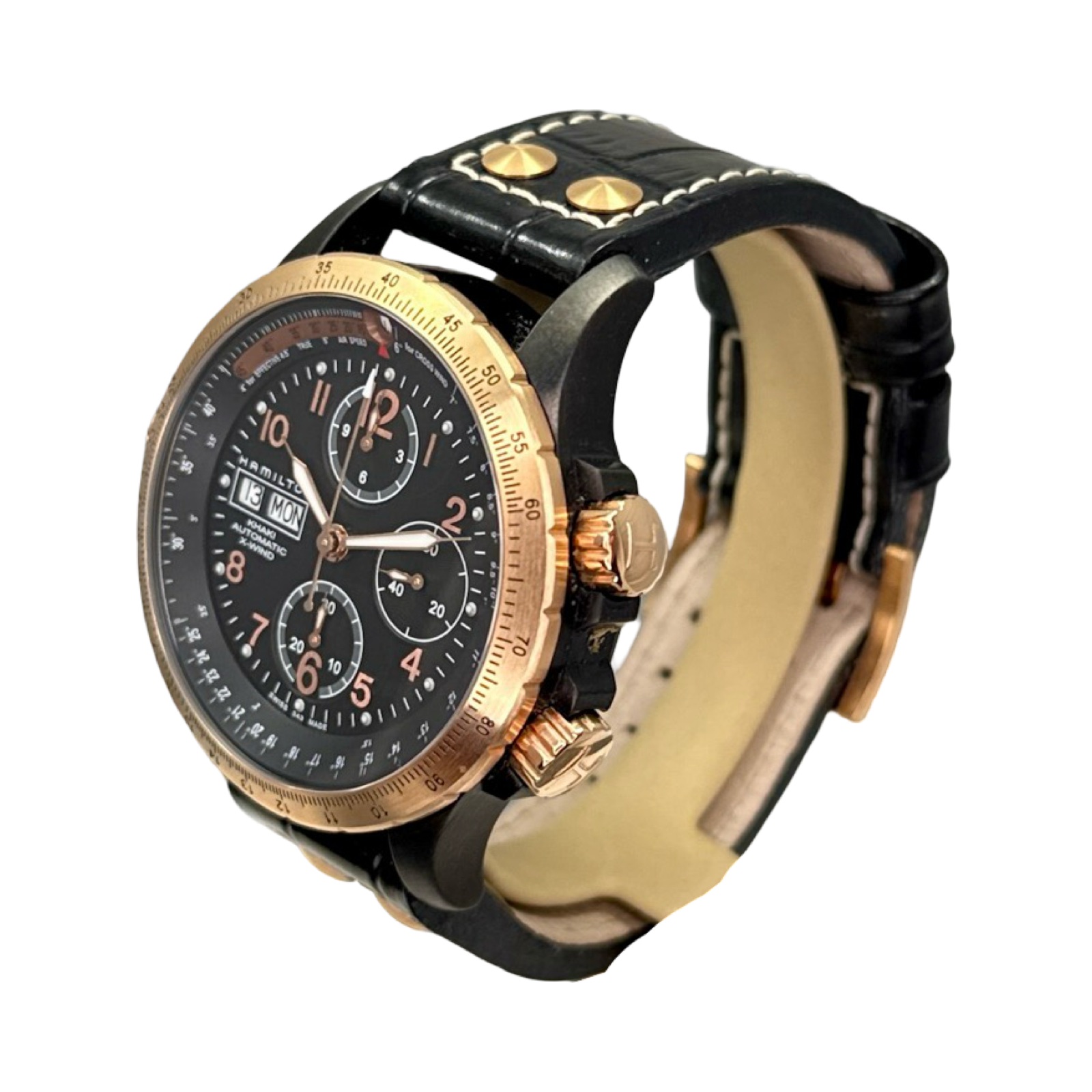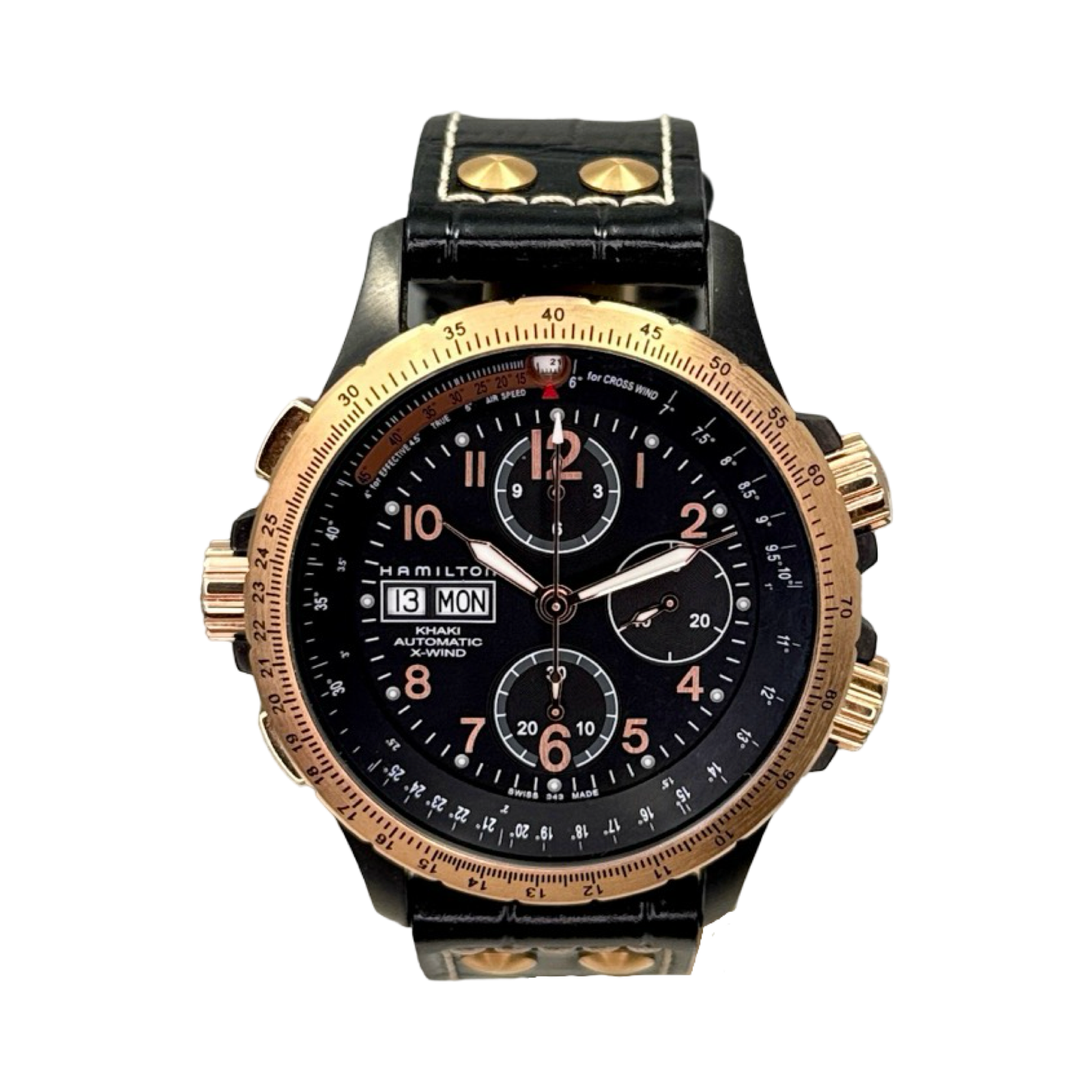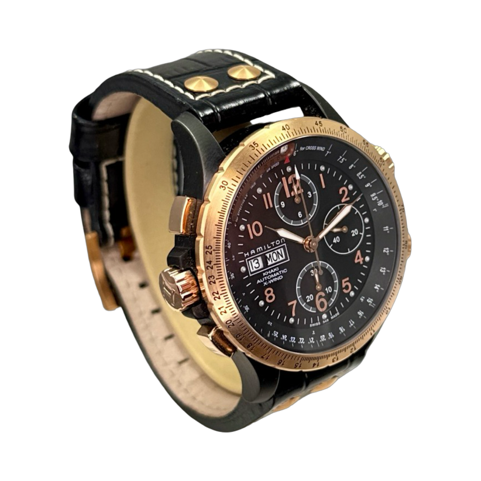 The H77676733 is a specific model within the popular Hamilton Khaki Aviation X-Wind series, known for its aviation-inspired design, technical look, and functional crosswind calculation feature via its unique dual rotating bezels and crowns, offering great value for a pilot's watch.