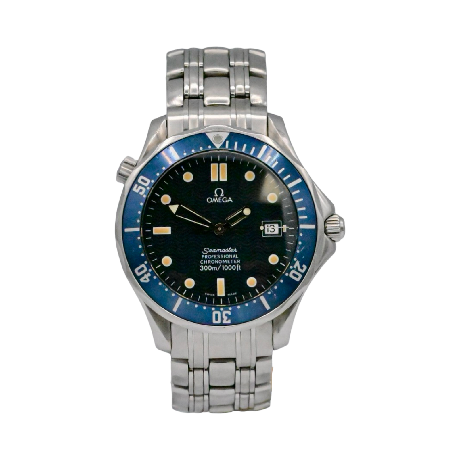 The iconic blue on the traditional "Bond" watch. Always ready to wear this diver for any occassion.