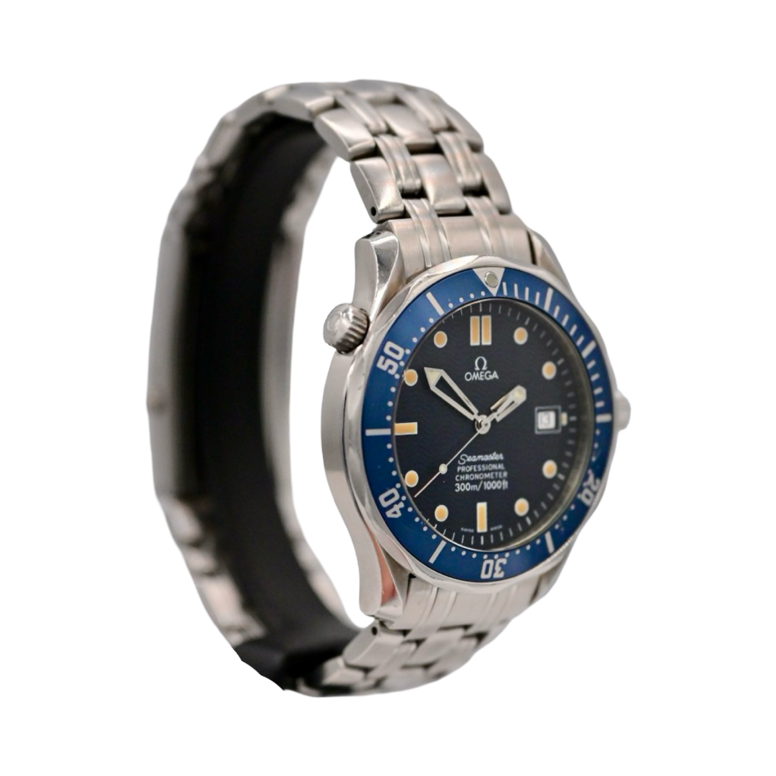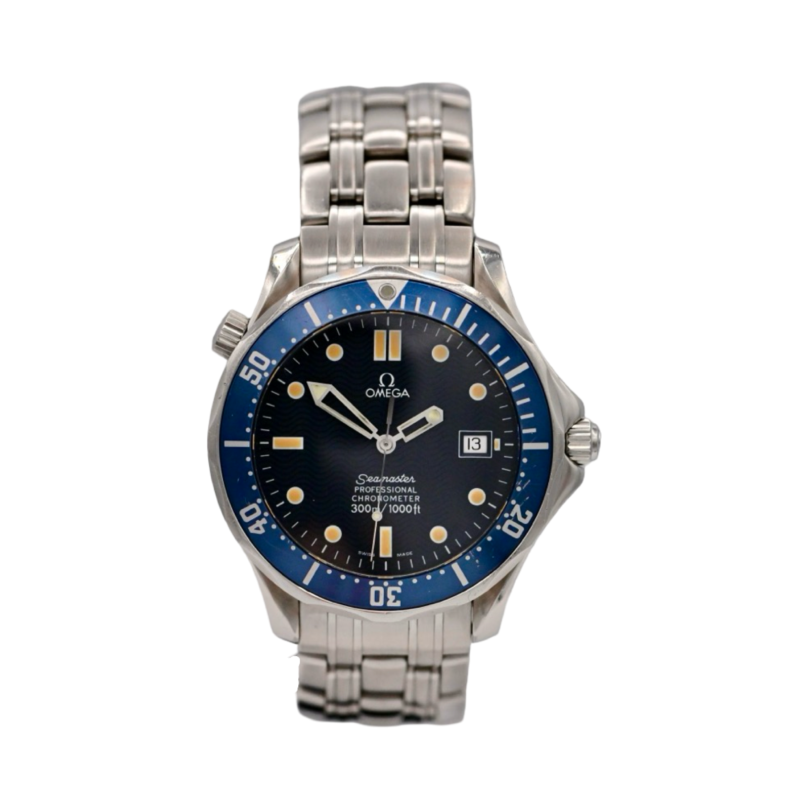 The iconic blue on the traditional "Bond" watch. Always ready to wear this diver for any occassion.