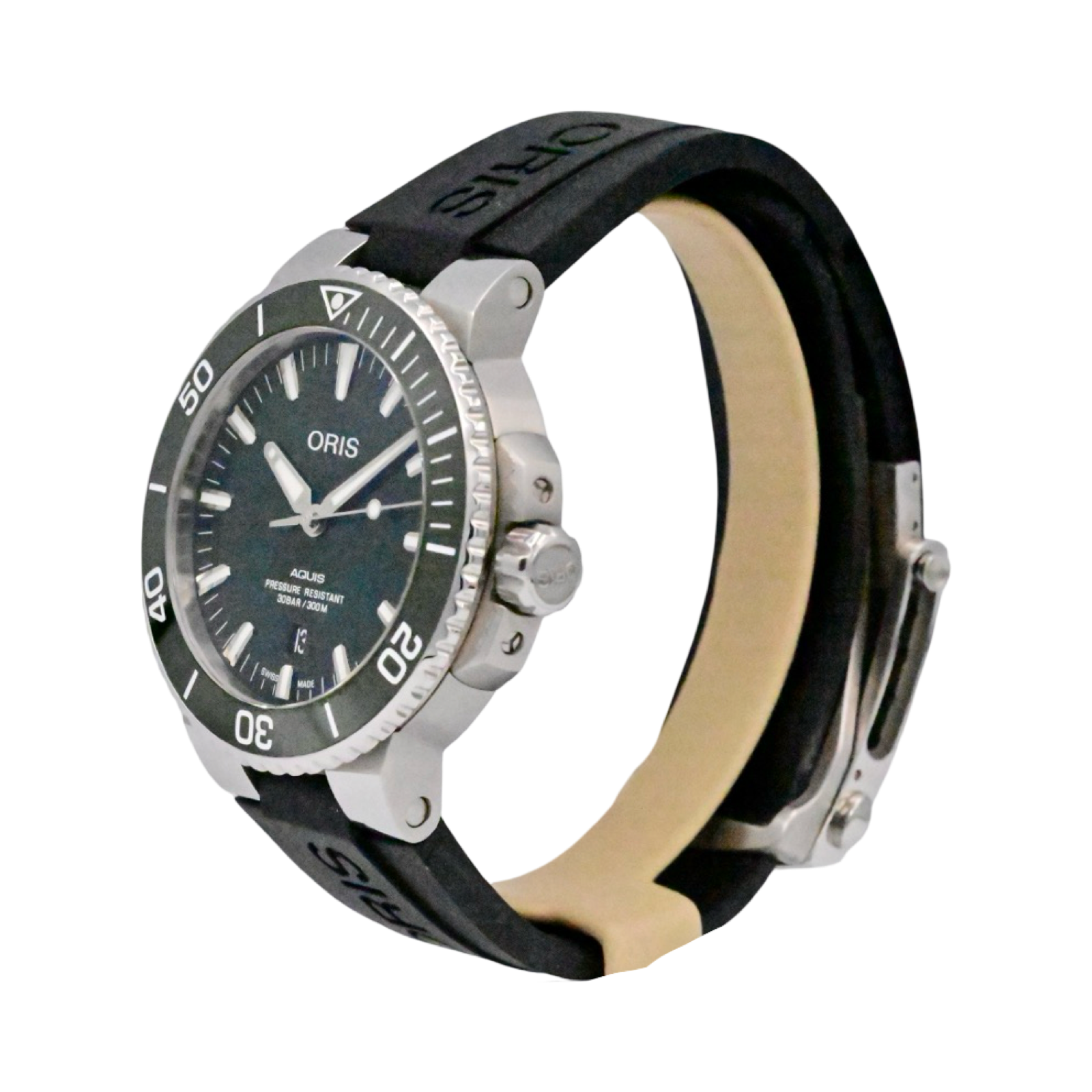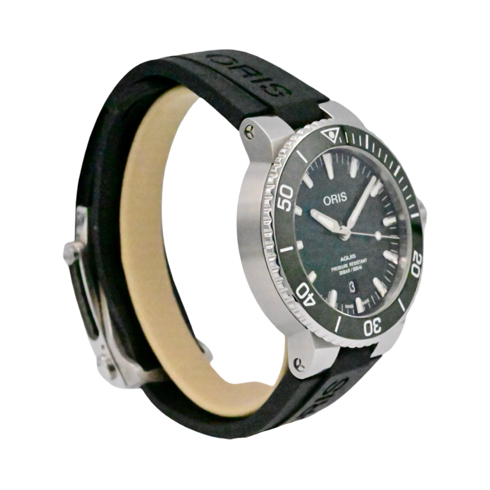 The Aquis Date 43.50 mm is a luxury everyday toolwatch with refined detailing and ergonomics. Its features include 30 bar (300 metres) of water resistance, a screw-down crown with protection and a uni-directional rotating bezel with a ceramic insert.