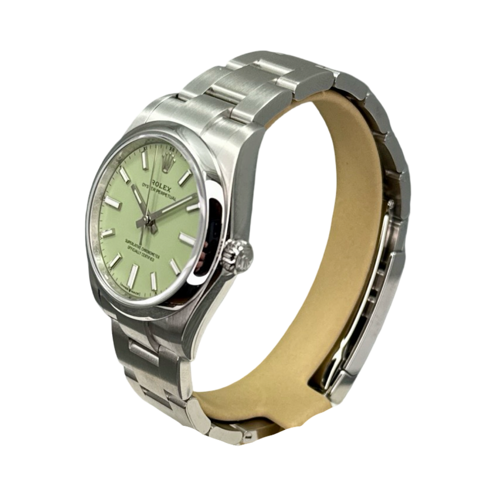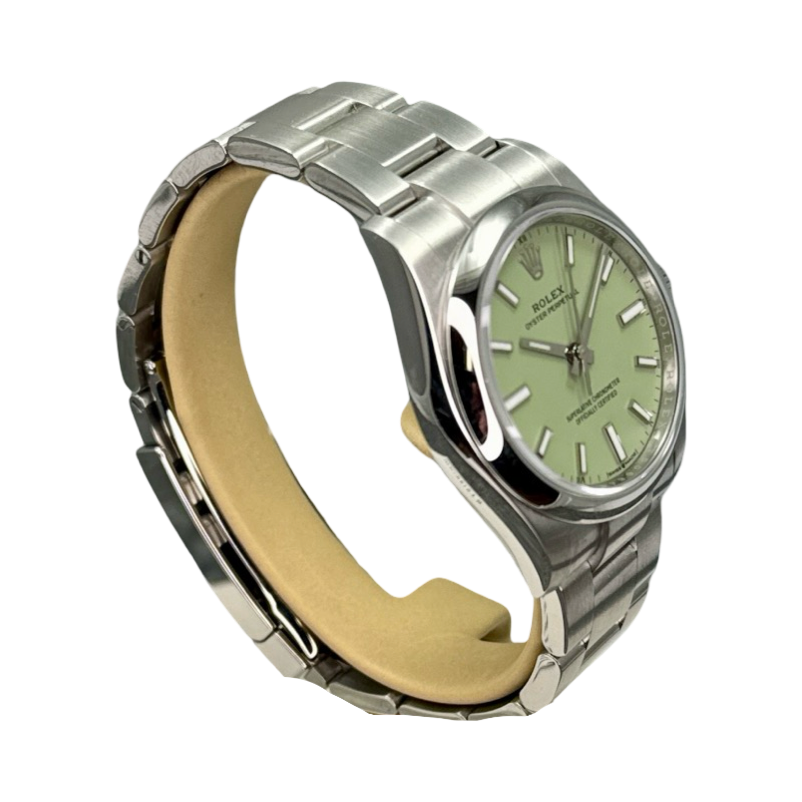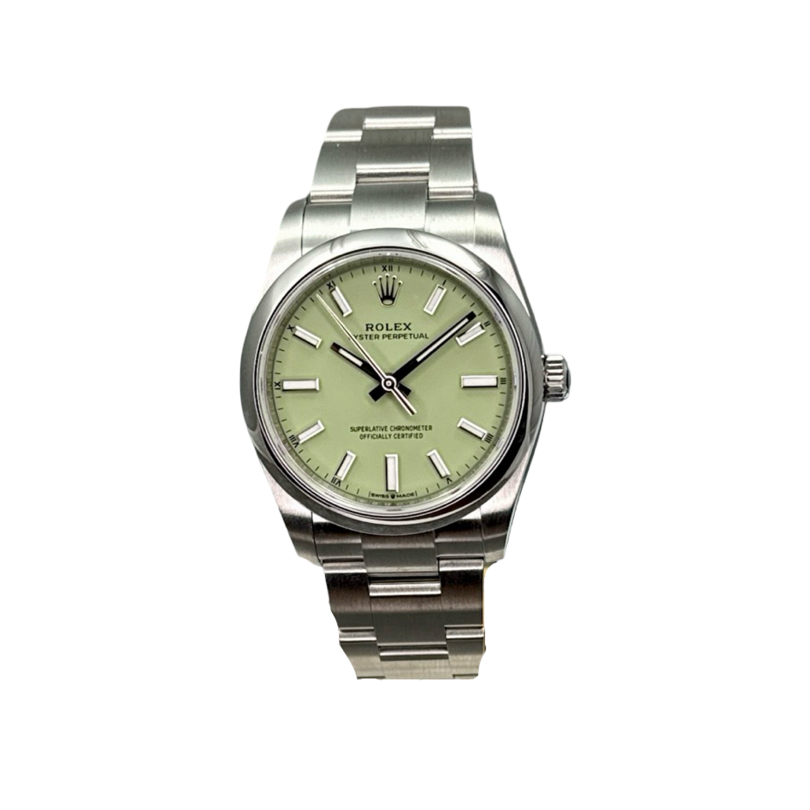 One of the Hottest Rolex right now are the pieces with "Stella Like" dials. This Pistachio OP34 is one of the hottest