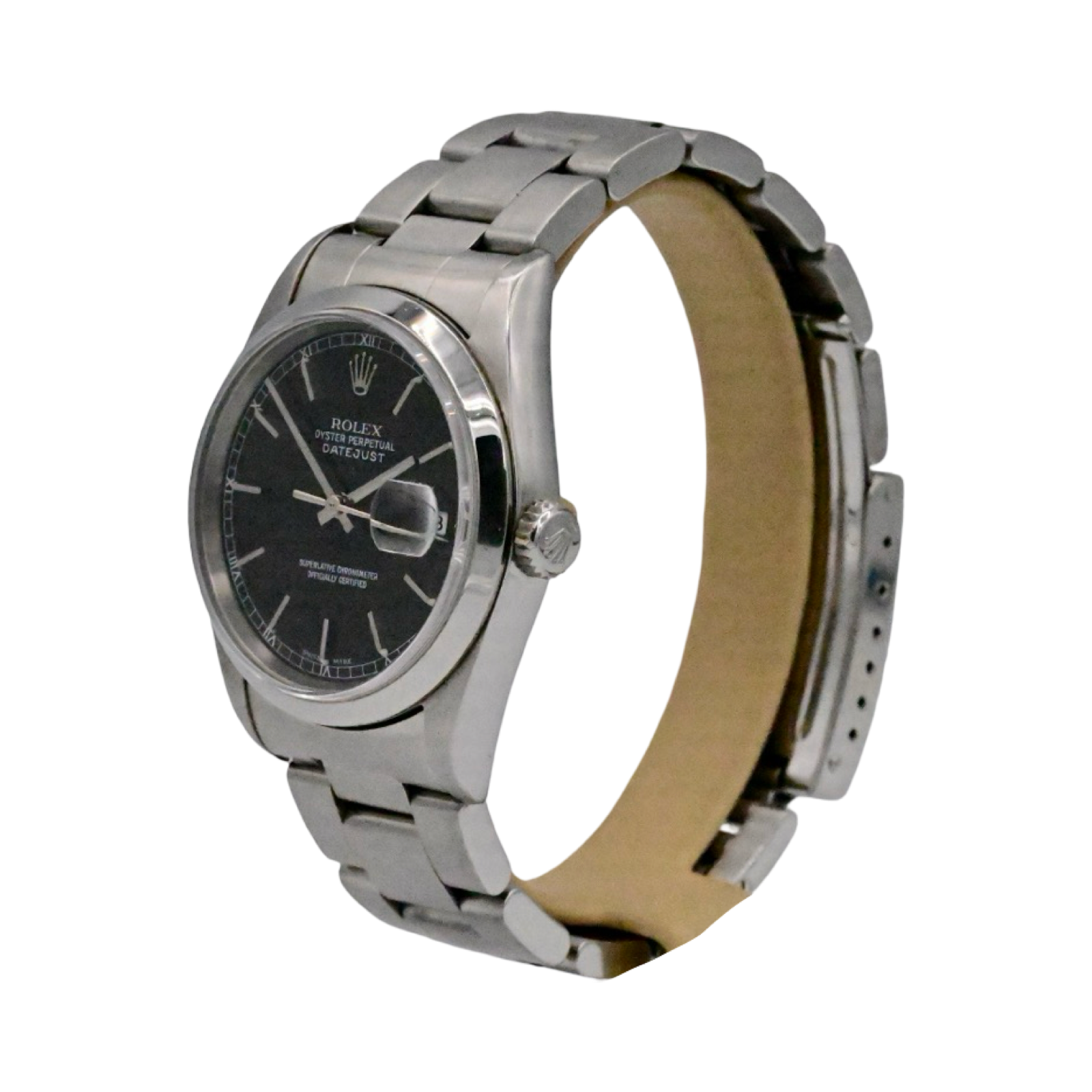 The classic look of the batons and trtium on this black dial plays wonderfully on the wrist. Comfortable size for either a man or a woman. Don't sleep on the 36mm....