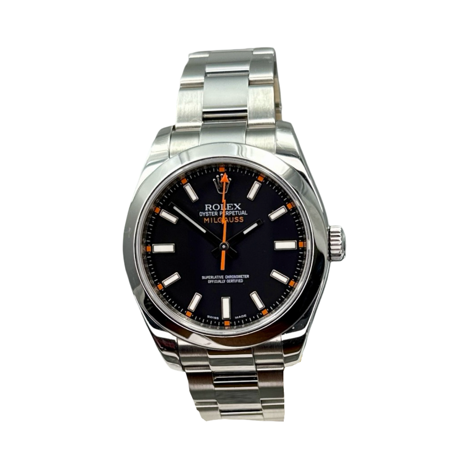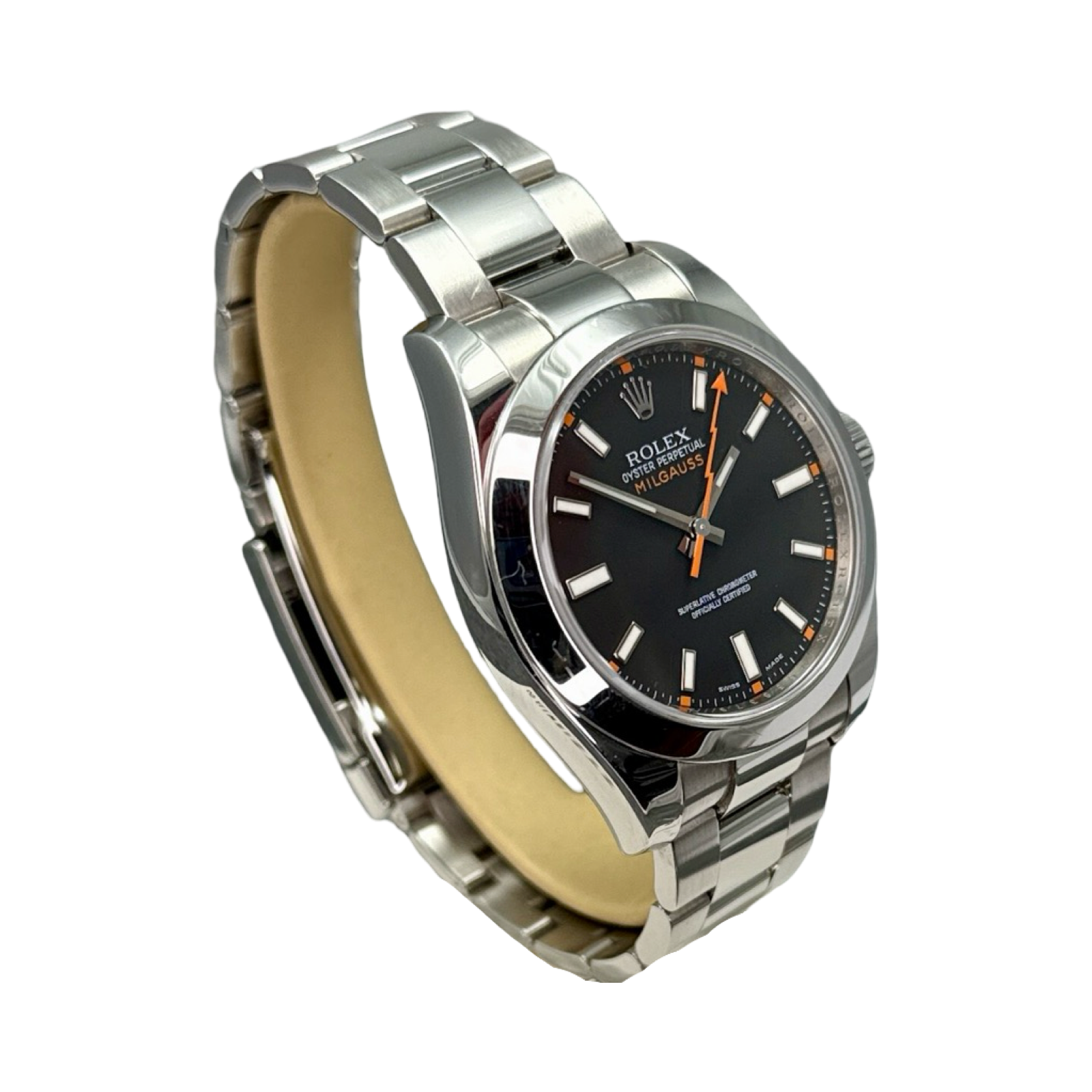 In a series known as Magnetic Watches, the Milgauss has a long history within Rolex Lore. Launched in 1954, it was the first Rolex watch to shield a movement from magnetic fields. At the time, most watches were resistant to about 50 to 100 gauss – about the strength of a refrigerator magnet. Per the name it is resistant to 1000 gauss.