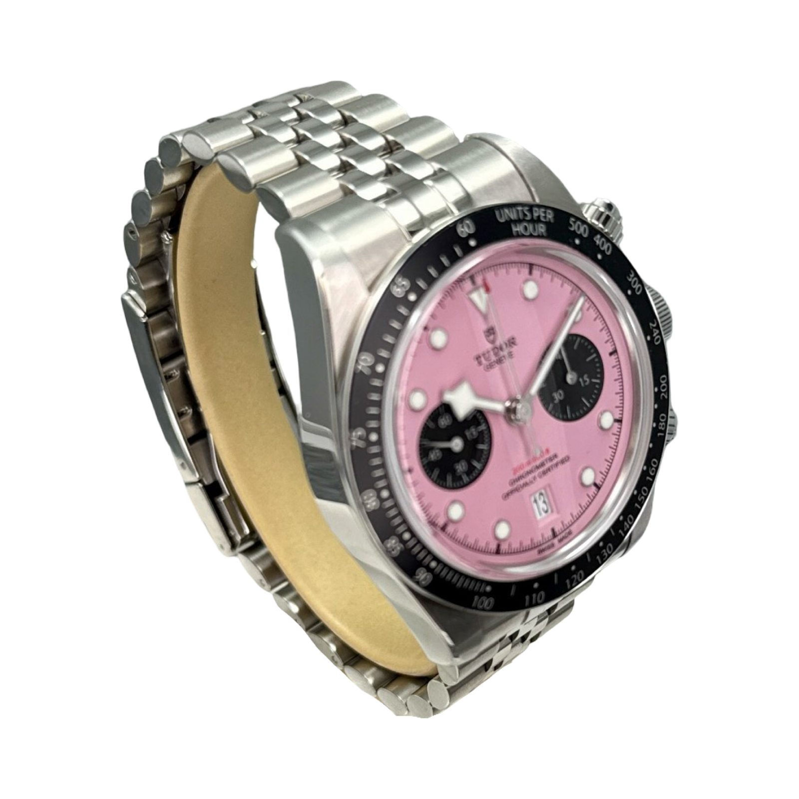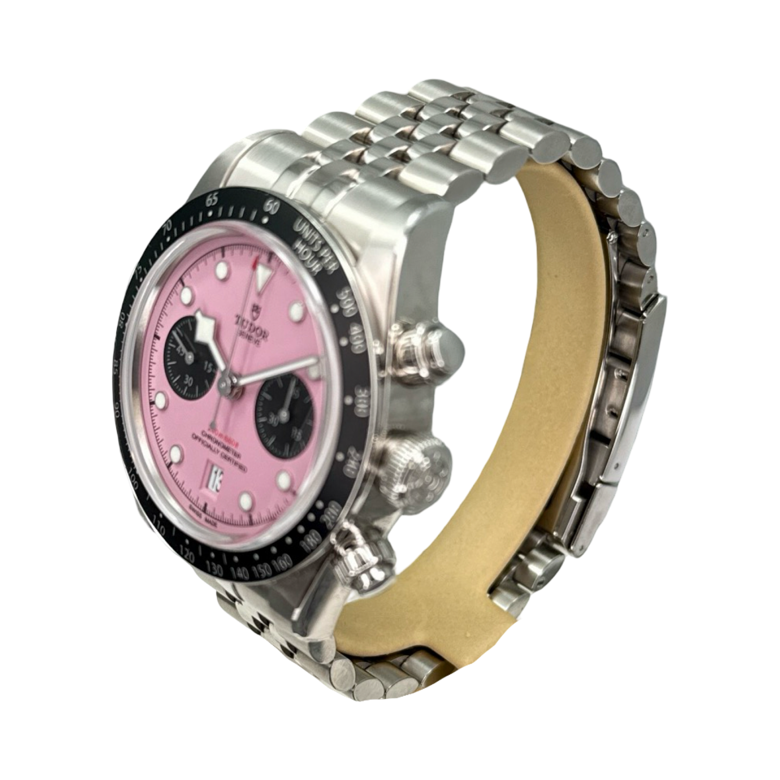 Being bold can take many forms. Made in the spirit of the daring TUDOR ambassadors, this version of the Black Bay Chrono stands out and is made for those who aren’t afraid to. A pink dial might seem unexpected at first, but going against the grain is part of TUDOR’s core DNA. That’s exactly what earned this daring design a place in the TUDOR range and part of the collection of exclusive and daring watches.