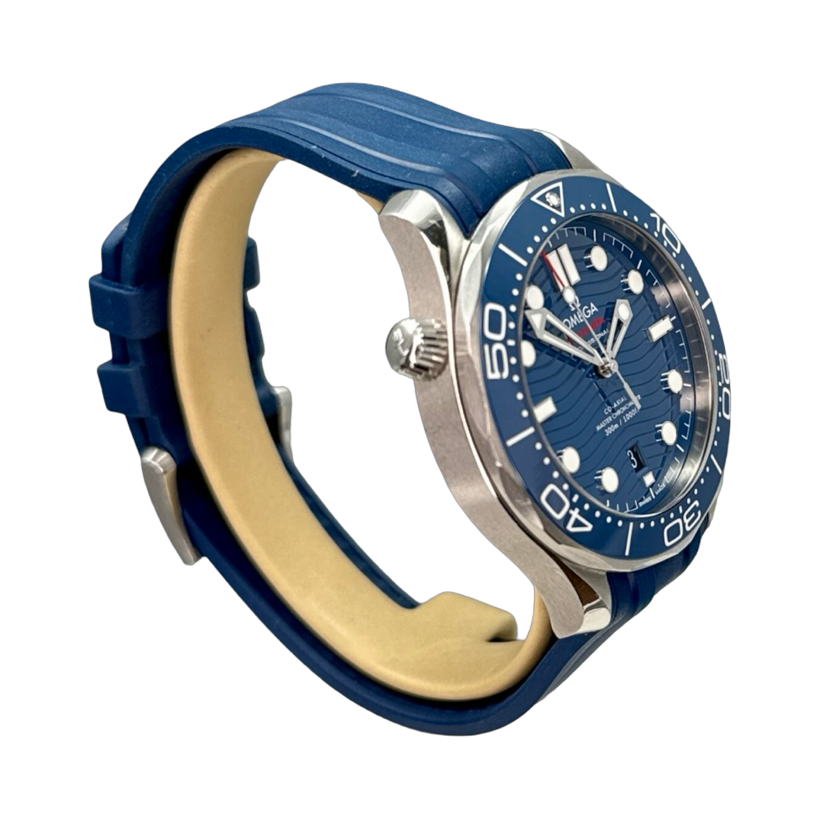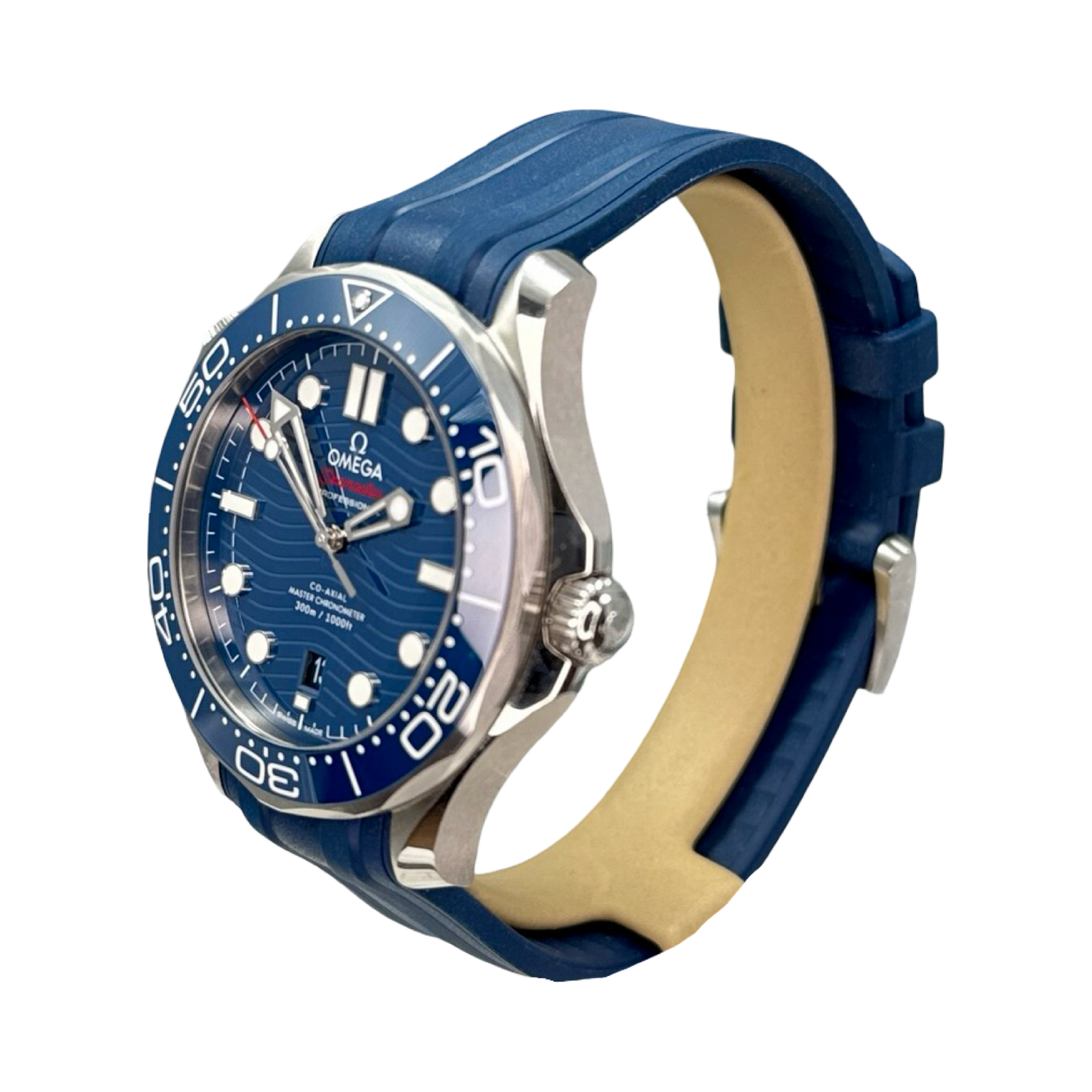• On Omega Blue Rubber Strap