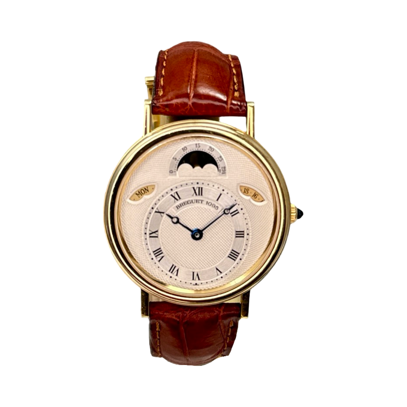 Students of Breguet will know that the 3330 is essentially a replica of a pocket watch that was created by Abraham-Louis Breguet in 1829. Daniel Roth re-introduced that design, among others, as a wristwatch during his storied career at Breguet. The symmetry of the dial, the combination of different finishes, and the thin 35.8mm case are just sublime. I’m not sure there’s a more beautiful day date moonphase in existence.