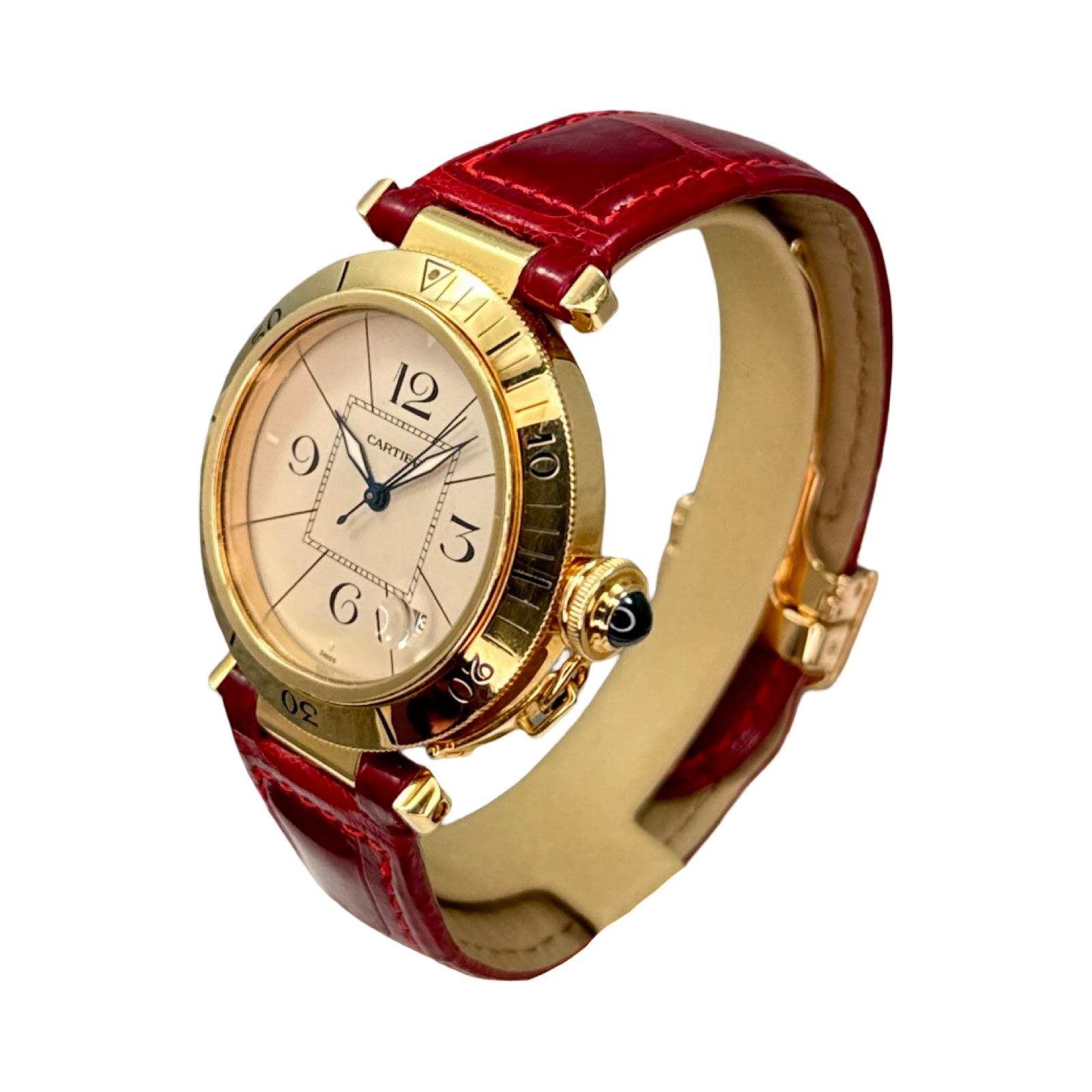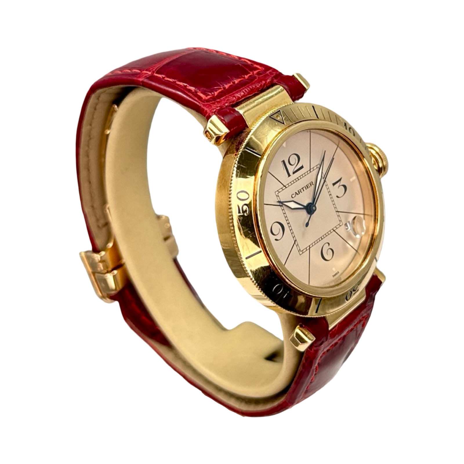 The Iconic Pasha turned sporty in this 18kt gold iconic piece.
